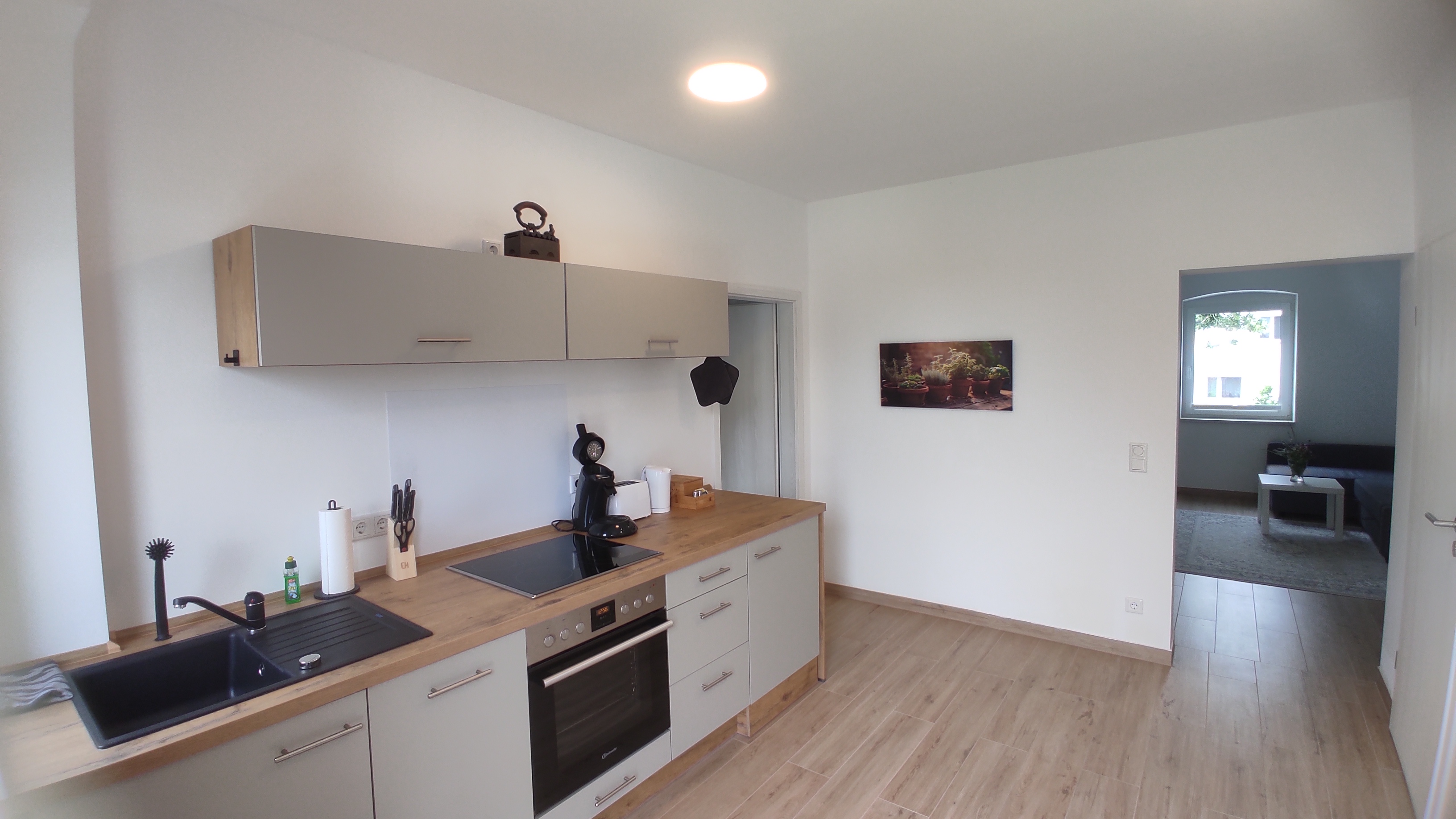 - Gut ausgestattet: Herd, Backofen, Kühlschrank, Wasserkocher, Kaffeemaschine, Toaster, Kochutensilien, Gewürze, Geschirr